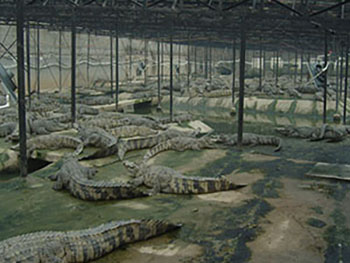 鳄鱼是迄今发现活着的早和原始的动物之一。出现于三叠纪至白垩纪的中生代(约两亿年前),性情凶猛的脊椎类爬行动物,它和恐龙是同时代的动物,属肉食性动物。公认鳄鱼的品种共23种。鳄鱼是生态价值、科学价值和经济价值高的野生动物。因此,一些积极发展鳄鱼养殖业。